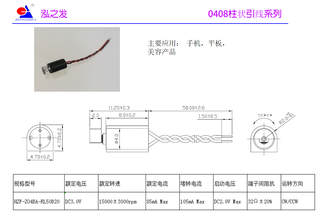 Your Location: Home -> Vibrating Motor -> 0408 column lead series